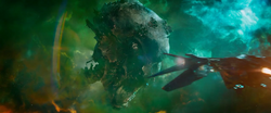 In the Battle of Xandar, Quill, Gamora, Groot, and Drax used the Milano to enter Ronan's ship, the Dark Aster. In the process, the ship was severely damaged.[1]